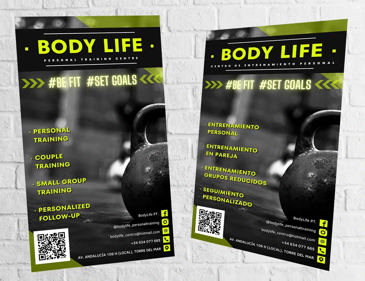Sergio se aventura a lanzar su propio negocio de entrenamientos personales y de grupos reducidos abriendo su local en la zona más céntrica de Torre del Mar (Málaga) y confía en nosotros para dar con su seña de identidad de marca, haciéndonos llegar sus ideas de colores fuertes y contundentes a la vez que planos y clásicos para el tipo de negocio que inaugura.