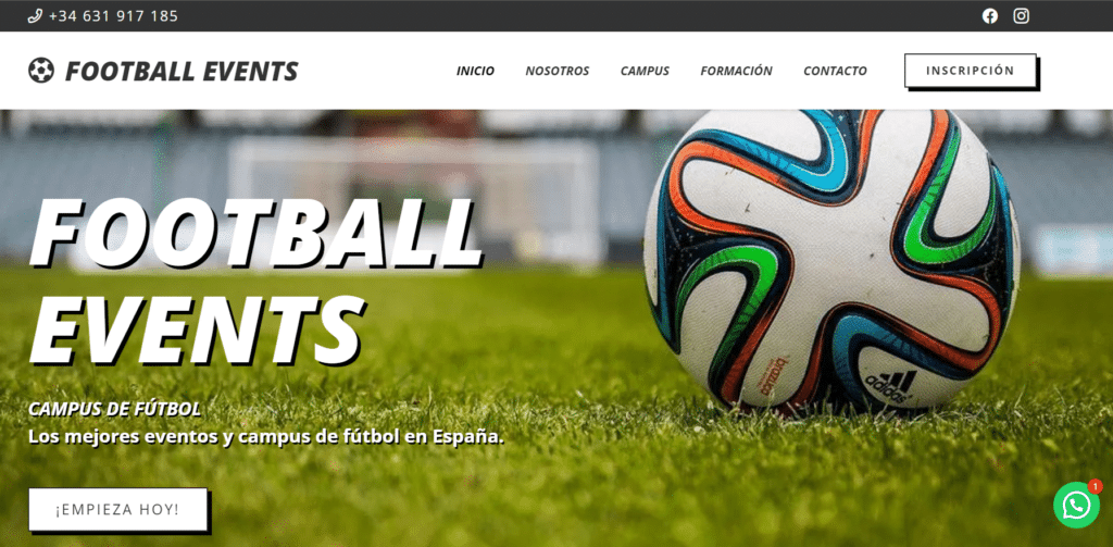FOOTBALL EVENTS (Eventos de fútbol) es una empresa dedicada a la celebración de eventos y campus deportivos relacionados con el mundo de fútbol y orientado especialmente para niños y niñas que quieran desarrollar sus habilidades futbolísticas.