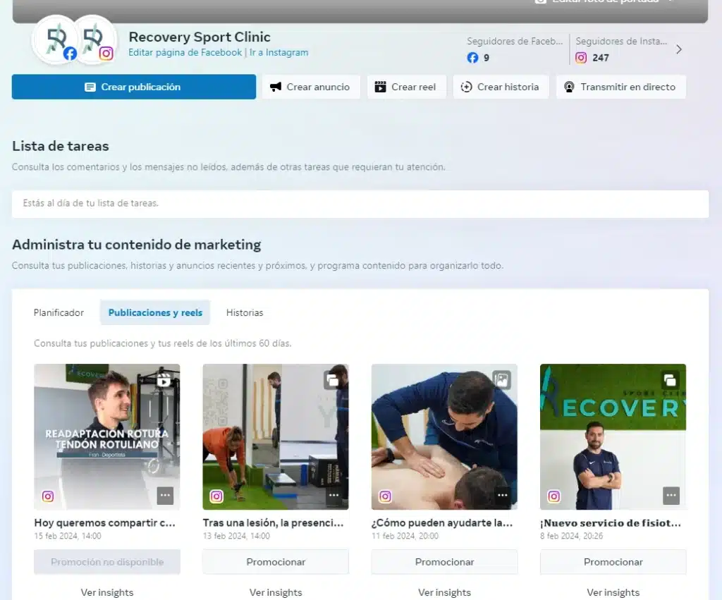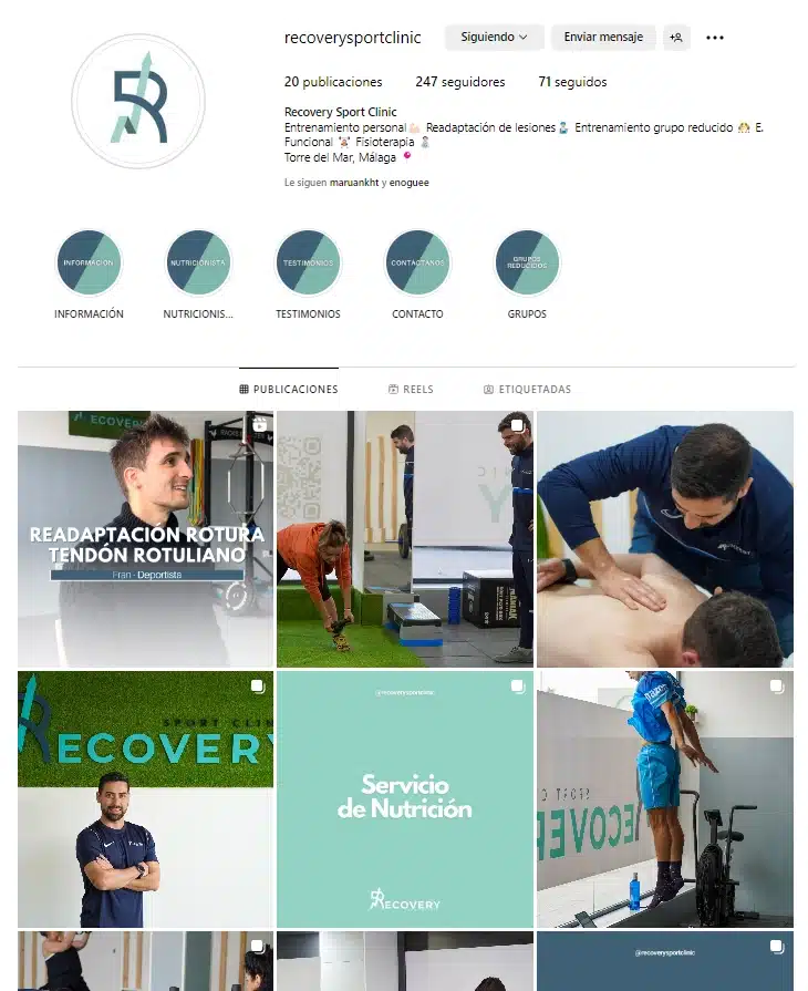 Los servicios que hemos prestado a Recovery Sport Clinic han sido: